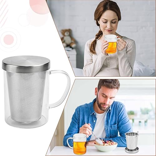 ADERTOS Tasse à Thé avec Infuseur à Thé et Couvercle Tasse à Thé avec Couvercle et Passoire Mug Thé avec Infuseur Verre de Thé Borosilicate avec Infuseur avec 100 Sachets de Thé pour Maison (500ML)