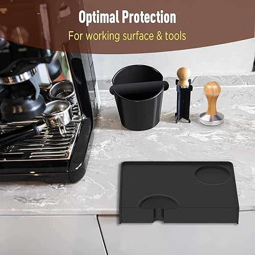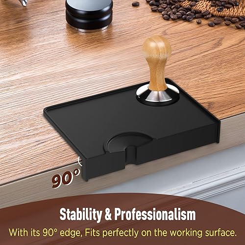 Tapis Tassage Espresso Silicone Antidérapant - Tampon Presse Poudre Café pour Bourrage Grains 21.2x15cm Tamper Tapis avec Protection Bords à 90° pour Accessoires Portafilter Barista, Bar et Cuisine