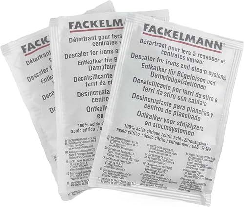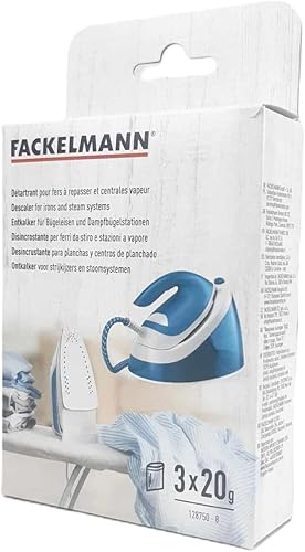 Fackelmann 128750 Détartrant fer à repasser, Poudre détartrant, Détartrant, Acide citrique, Blanc, 3 x 20 g
