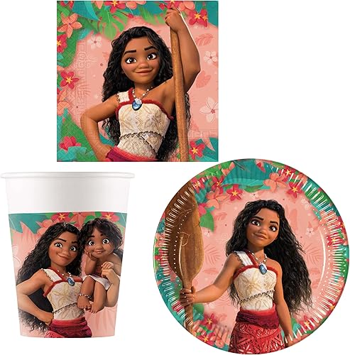 Procos - Set de fête Moana en plusieurs pièces pour anniversaire d'enfant ou fête à thème, décoration de table