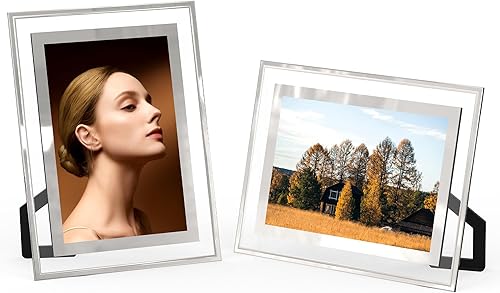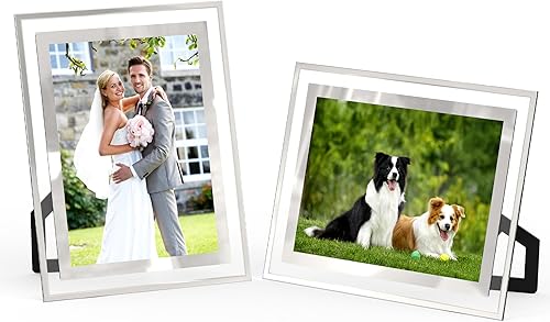 2 PCS Cadre Photo en Verre 10x15, Cadre Photo Verre Transparent, Cadre Photo 10x15 Argenté, Cadre Photo Mariage Portrait, Cadre Photo de Bureau, Anniversaire Cadeau de Noël, Horizontal ou Vertical