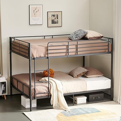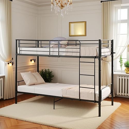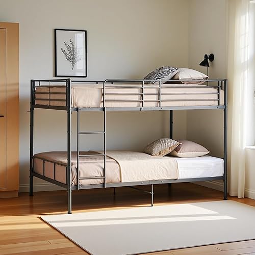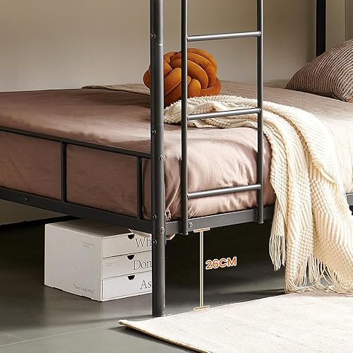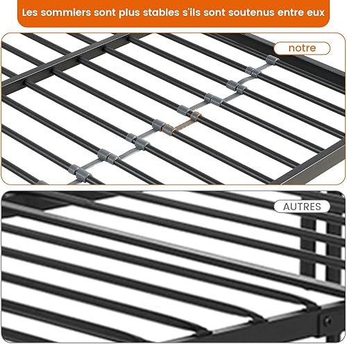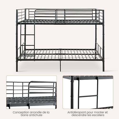 DORAFAIR Lit Superposé en Métal 140x200 pour Enfants avec Escalier et Espace de Rangement Noir