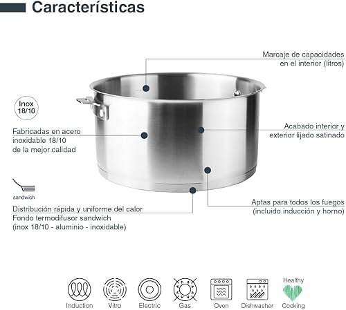 Lacor - 56616 - Corps de poêle Combi, acier inoxydable 18/10, aluminium, 1,5 litres, fond de diffuseur de chaleur sandwich, empilable, à induction, lavable au lave-vaisselle, au four, ø16cm
