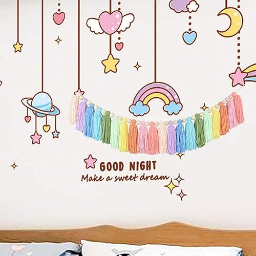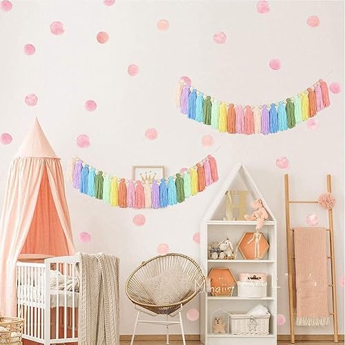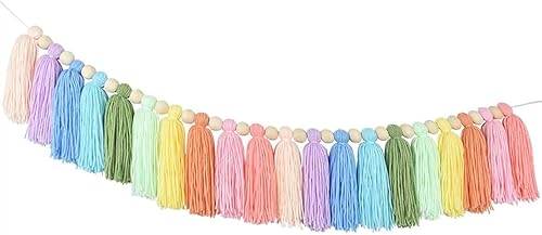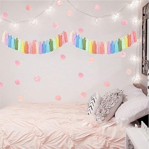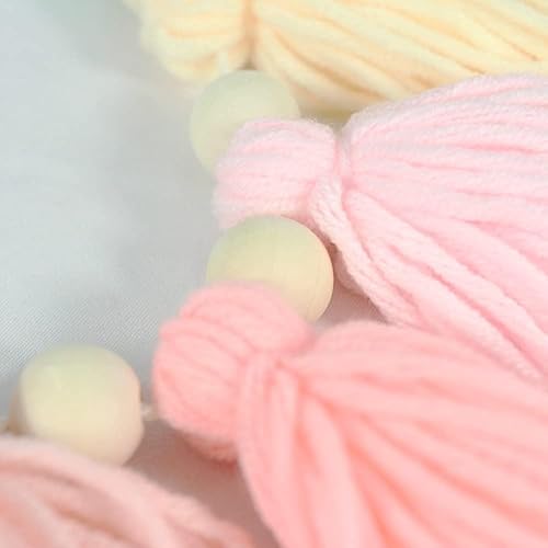 ieron Guirlande de pompons en coton arc-en-ciel - Toile de fond pastel colorée bohème - Décoration murale pour chambre d'enfant, chambre à coucher, anniversaire, fête de Noël