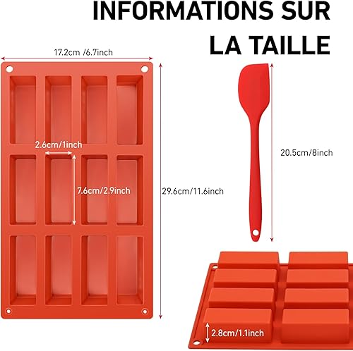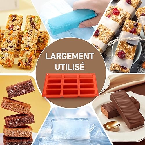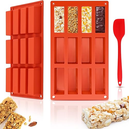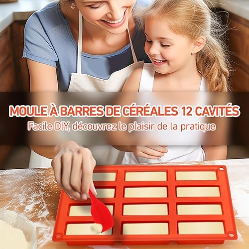 2 Pièces Moule Barre de Céréales à 12 Cavités, Moule Barre de Céréales Silicone Plus Une 1 Pièces Spatule à Pâtisserie, Moule Financier Silicone pour Pain, Gâteaux, Barres de Chocolat et Biscuitsts