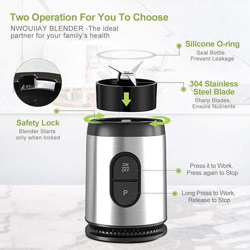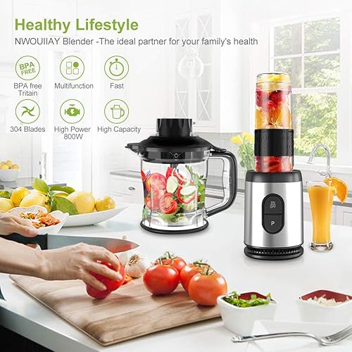 NWOUIIAY Blender Mixeur Multifonctionnel 5 en 1 Machine à Smoothie 800W Mixeur Blender 1.2L pour Smoothies Milk-Shake Jus de Fruits Légumes Poivre Épices Blender Portable pour Sport Voyage et Maison