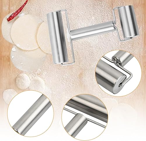 volumoon Rouleau à Pâtisserie, Rouleau Pâtisserie Cuisine en Acier Inoxydable, Rouleau Patisserie en Métal Anti-rouille, Antiadhésif Petit Rouleau Pâtisserie pour Gâteaux, Tortilla, Biscuits (A)