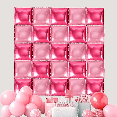 BOXOB 25pcs Kit de Mur Ballons Carrés Mylar, Double Face Toile Fond Ballons Carrés pour Mariage Fête d'Anniversaire Tunnel Enterrement Vie Jeune Fille Décoration d'Arche (Rose Rouge & Rose)