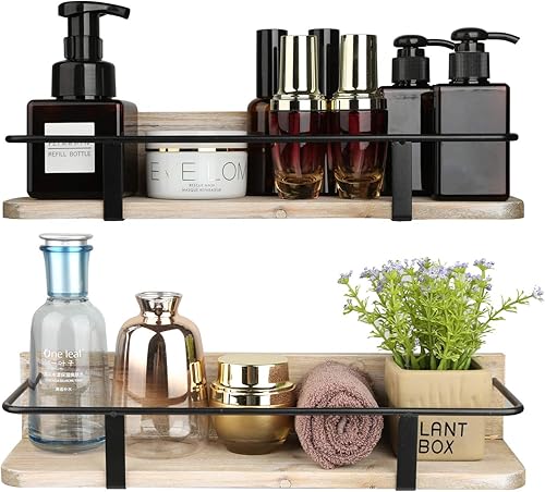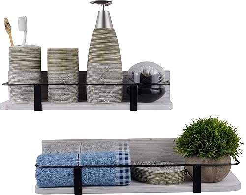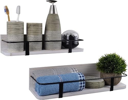 Eitida Étagères de Rangement décoratives,Lot de 2 étagères Flottantes murales en bois rustique pour chambre à coucher, salle de bain, salon et Cuisine,Présentoir en bois (grand et petit) Gris