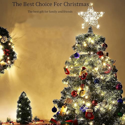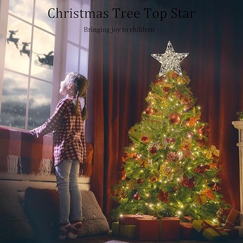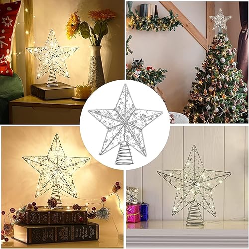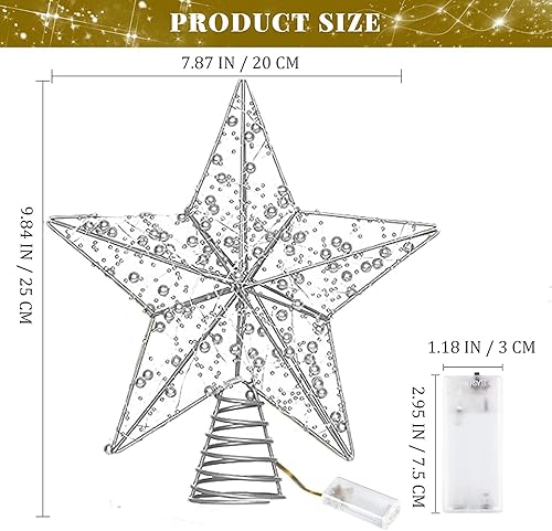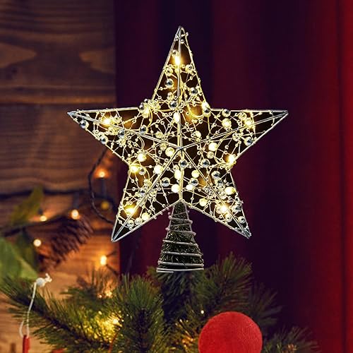 Etoile Sapin de Noel, 25 cm Etoile Sapin de Noel Lumineuse, Métal Design Gletterez 20 LED Lights Cime d'arbre de Noël for Festive Christmas Home Décoration (Or pailleté)