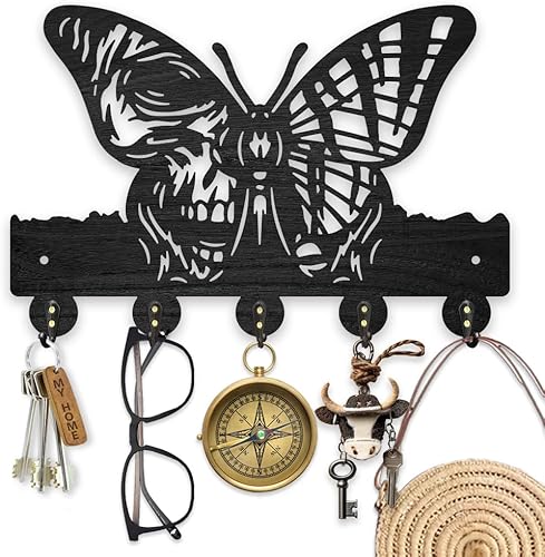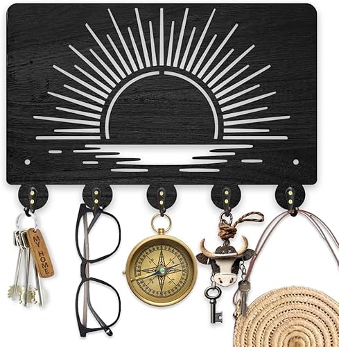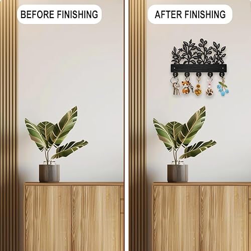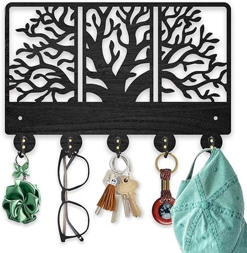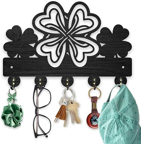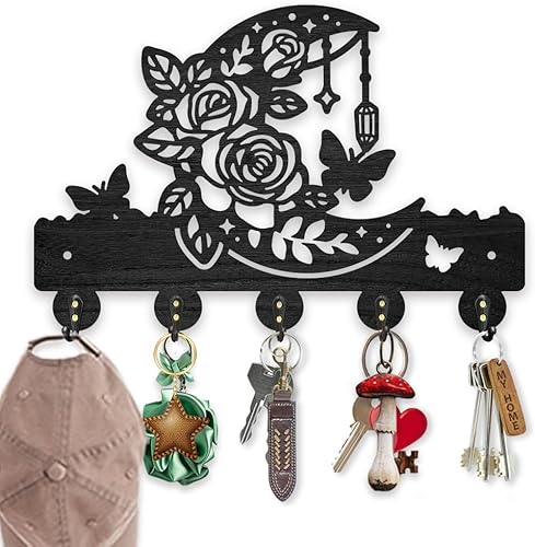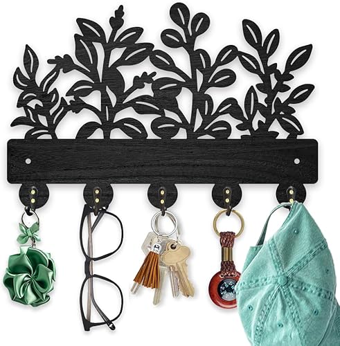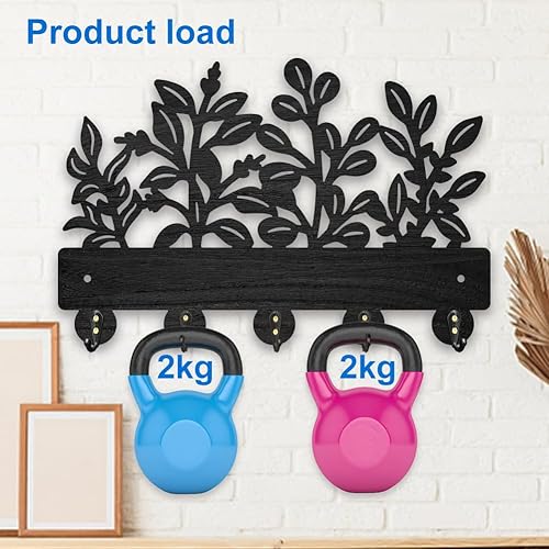 MAYJOYDIY Porte Clef Mural en Bois de Cheval et Fleur 30×20cm Animaux Vintage Fixation Murale Crochets pour Manteaux Chapeaux avec 5 crochets en Alliage pour Entrée Porte D'Entrée Cuisine Bureau Décor