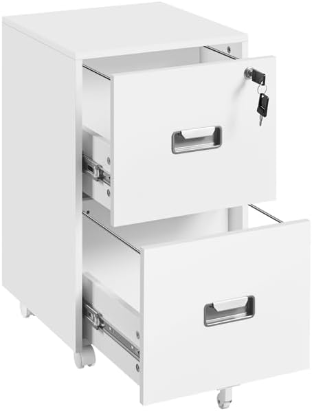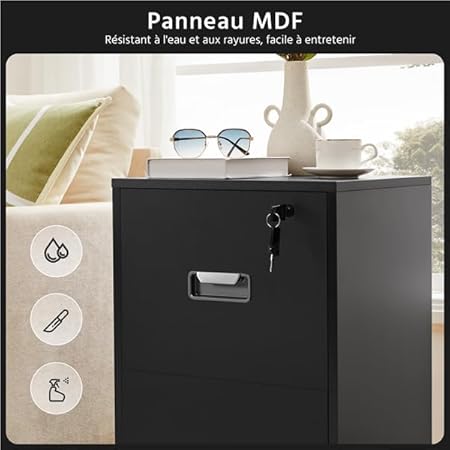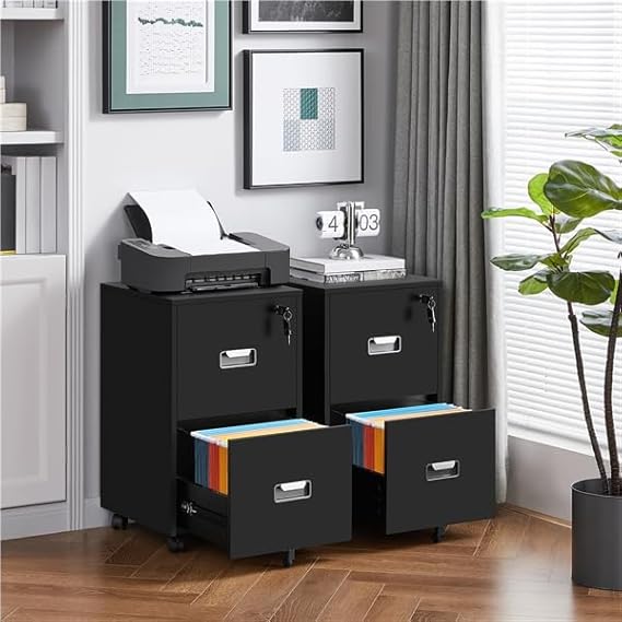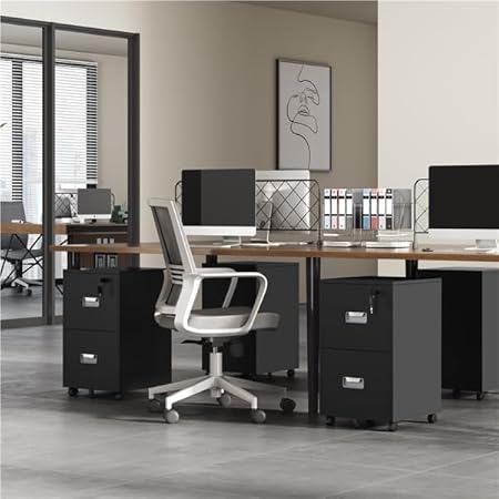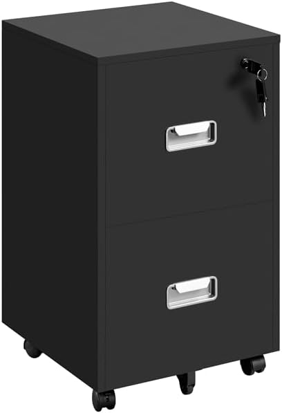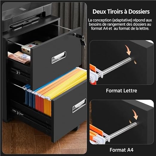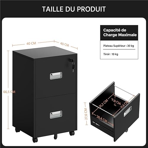 Yaheetech Caisson Bureau avec 2 Tiroirs?Rangement Document à roulettes?Classeur à Fichiers pour Format A4/ Lettre Style Industriel, 40 cm L × 40 cm l × 66,5 cm (Noir)
