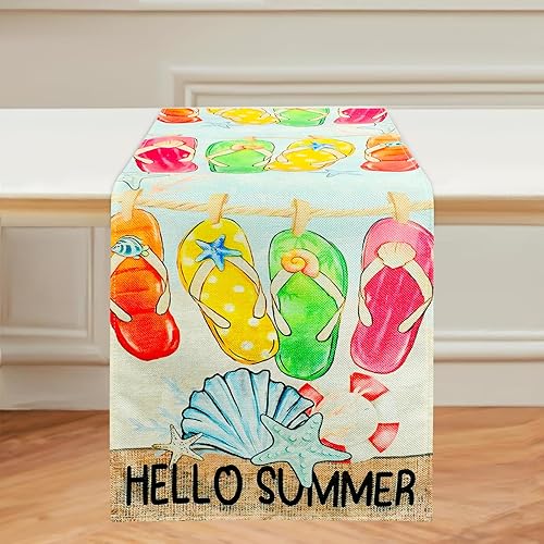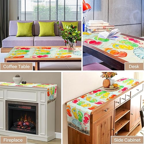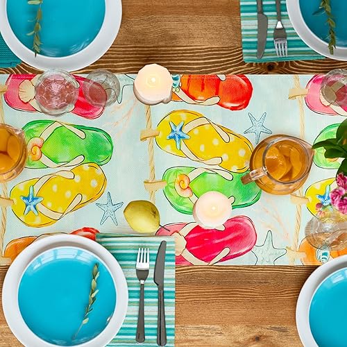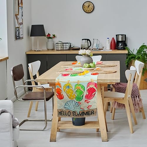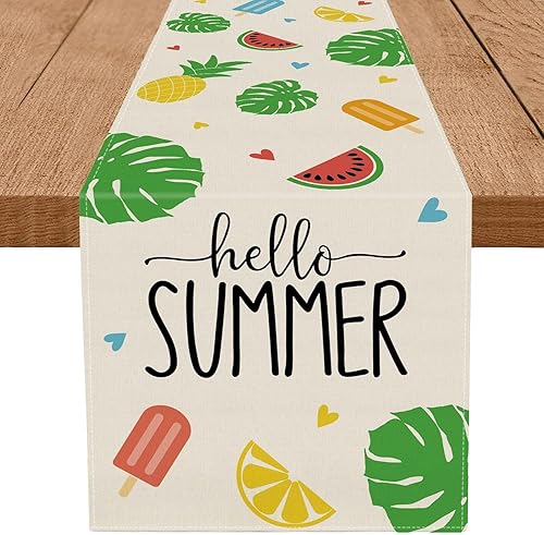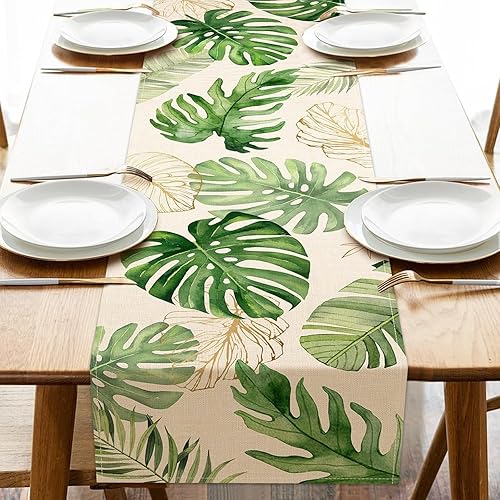 Chemin de Table d'Été Hawaïen Tropical Chemin de Table Estival Décoration de Table été avec Motifs Feuilles de Palmier pour Cuisine et Salle à Manger, Décoration d'Intérieur