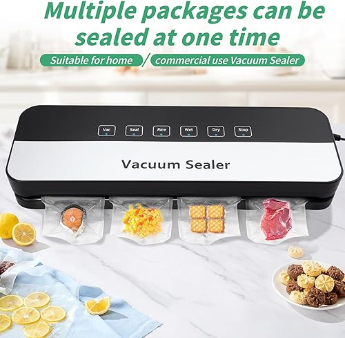 Machine à emballer sous vide, 6 en 1, pour aliments, mode sec/humide, avec sac sous vide