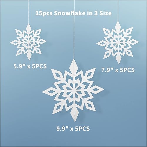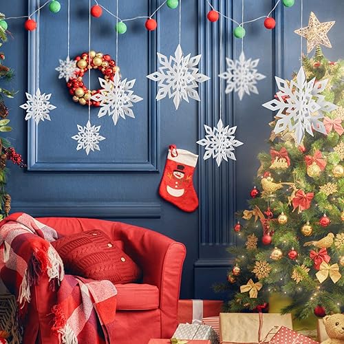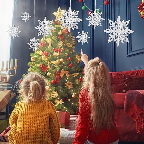RLAVBL 15 Décoration de Noël en Flocons de Neige Suspendus, Pendentif Noël Flocons de Neige Blancs en 3D pour Décorer Le Sapin de Noël, Les Anniversaires et Les Fêtes