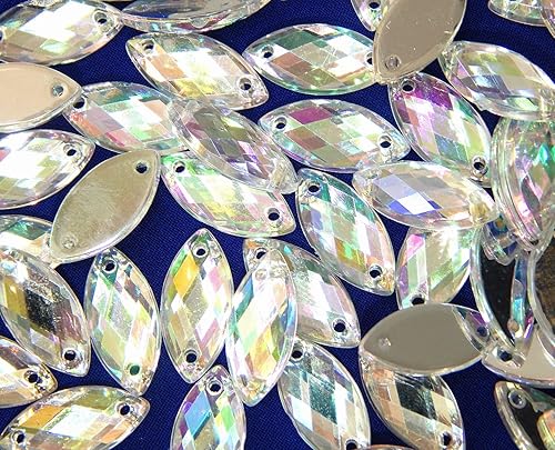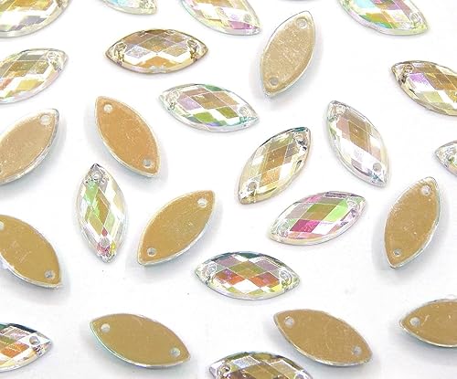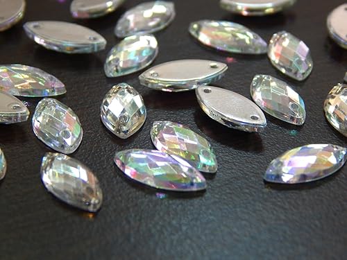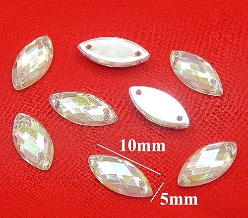 Lot de 200 strass ovales à coudre - Cristal AB - 10 x 5 mm - En acrylique - Dos plat - Pour vêtements, travaux manuels, vêtements et sacs, 10 x 5 mm, acrylique, Pas de gemme