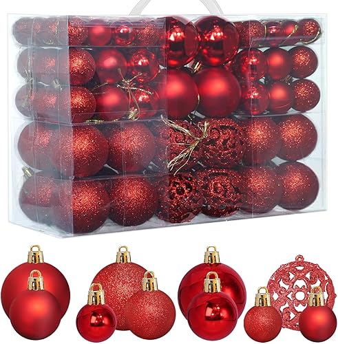 ZFYQ 100Pcs Boules de Noël, Ensemble de Boules à Suspendre Décoratives pour Décorations d'arbre de Noël de Vacances, Rouge