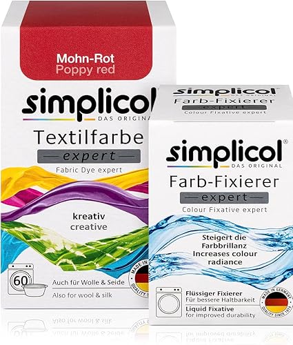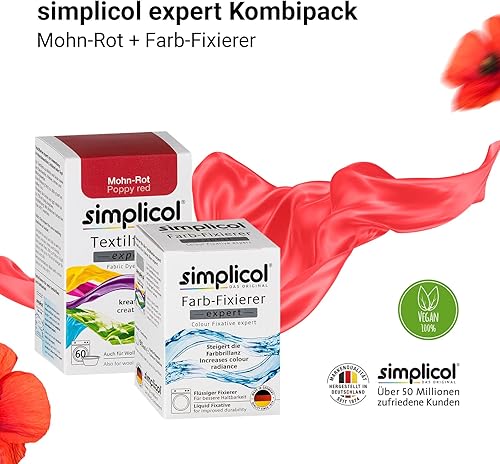 simplicol : Kit Complet Teinture Expert + fixateur : Votre Teinture Express (Paquet 300g + Flacon 90ml) - Rouge Coquelicot