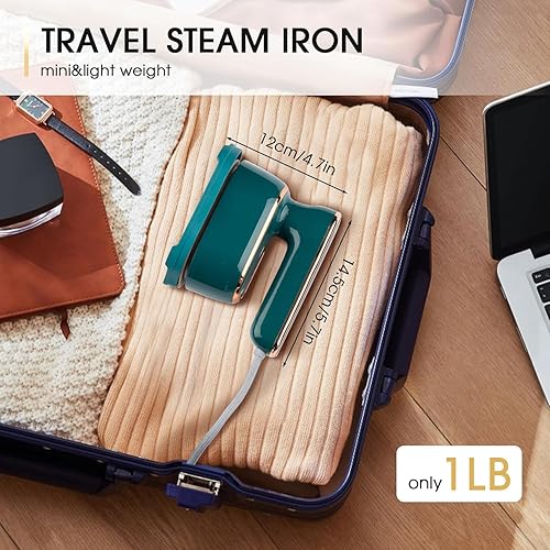 Mini Fer à repasser, Défroisseur Vapeur de Voyage 2 en 1 portable, 1000 W 15s De Chauffage Rapide, Steam Iron avec réservoir deau 100 ML, Petit Défroisseur à Main pour Maison et Voyage (vert)