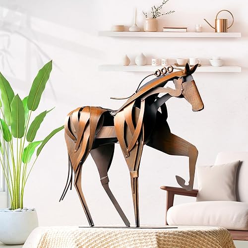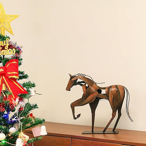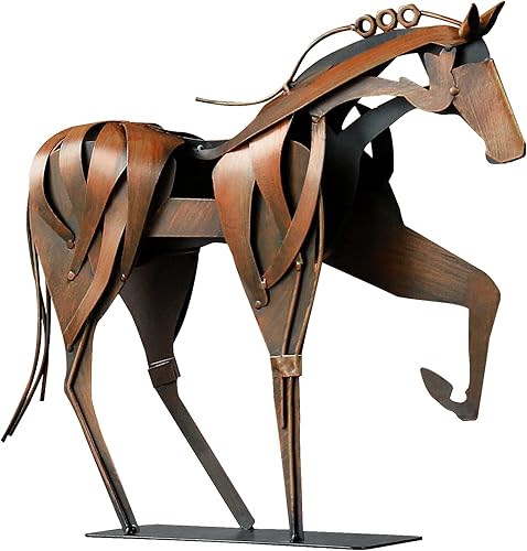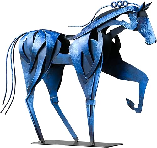 YASCO Hame Decor Sculpture en métal peinte à la main pour bureau, maison et jardin Motif cheval debout Bleu 38,9 x 33,5 cm