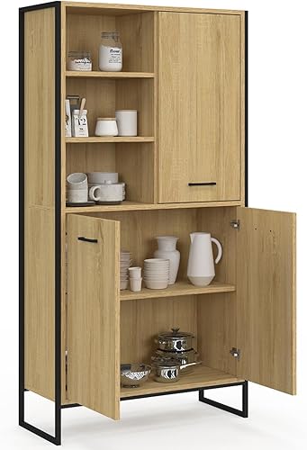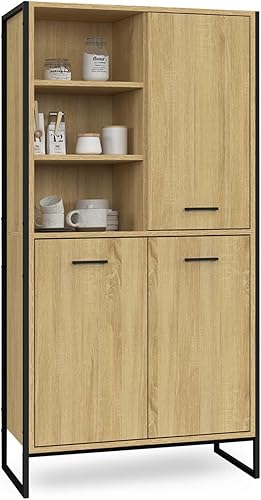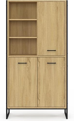IDMarket - Buffet Haut H. 160 cm Detroit 3 Portes Design Industriel