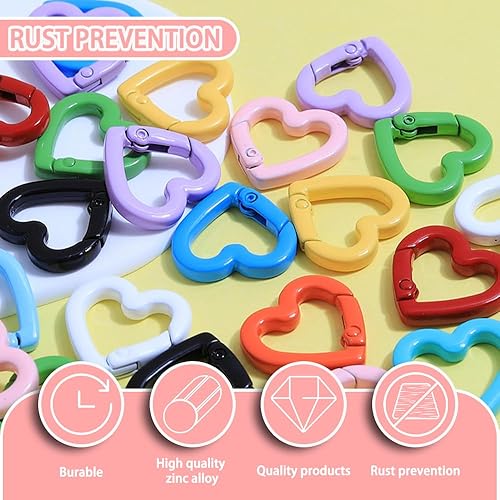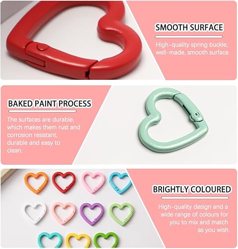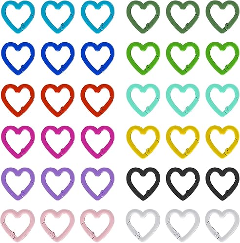 Sxutop 36 Pièces Mini Mousqueton en Forme de Cœur Coloré Petit Mousquetons en Alliage de Zinc Anneaux à Ressort Coeur Fermoir pour Sangle Chaîne Porte-Clés Sac à Dos Bricolage Artisanat (12 Couleurs)