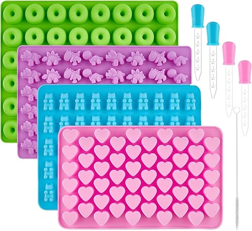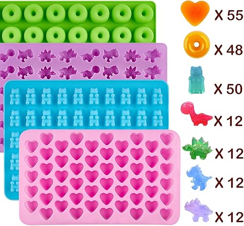 Moule à Bonbons en Silicone - Incluant des Moules Ourson, Coeur, Dinosaure et Mini Beignet, Non-adhérents et Faciles à Nettoyer