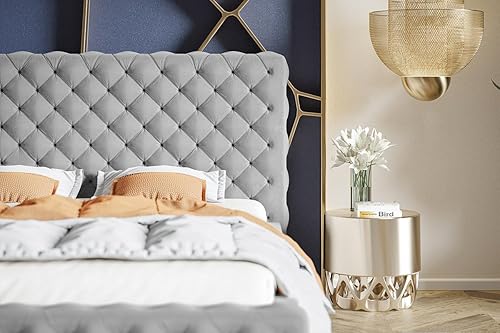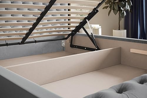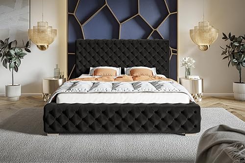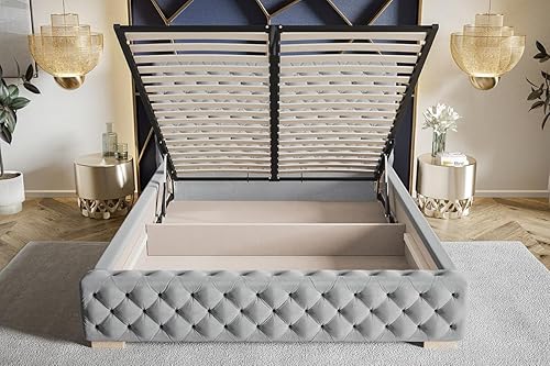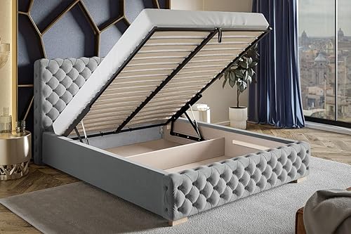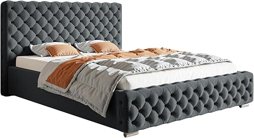 Emporius Lit avec Rangement Adora - Meubles de Fabricant, Lit Adulte 160x200, lit rembourrée - Lit avec tête de lit, Velour Gris foncé (Jasmine 96)