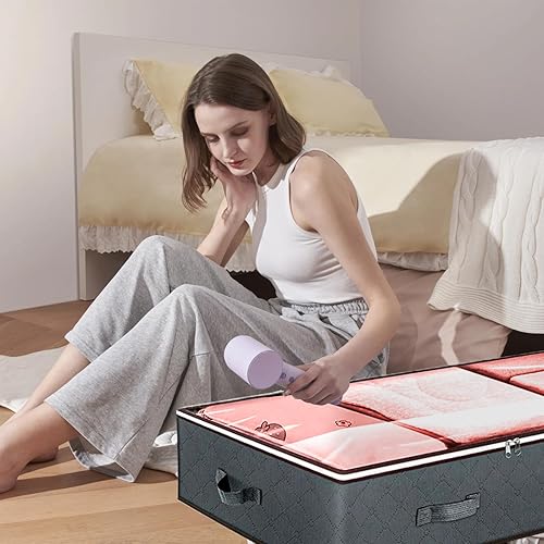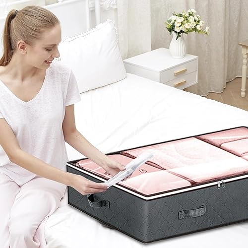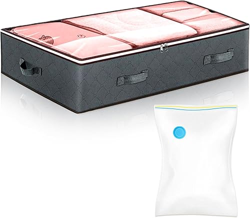Ensemble De Rangement Sous Le Lit, Sac De Rangement Avec 1 Sac Sous Vide, Organiseur Avec Fermeture éClair Et PoignéE, Pour VêTements, Couvertures, Couettes (100 X 50 X 18 Cm)