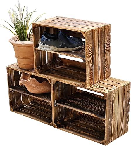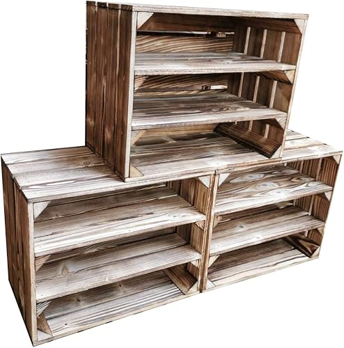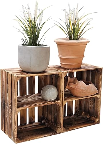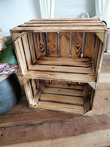 teramico Caisses à Fruits en Bois 50 x 40 x 30 cm avec étagère intermédiaire - Idéal pour Le mobilier - (Ensemble de 2, 2 x Bas Court)