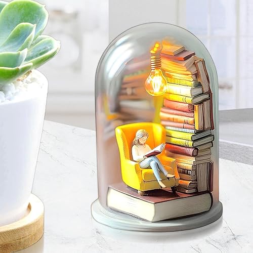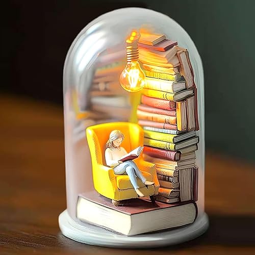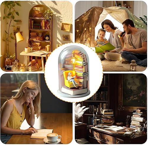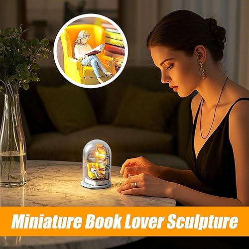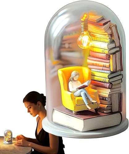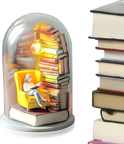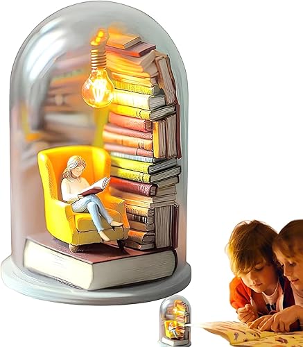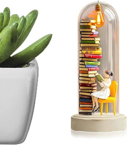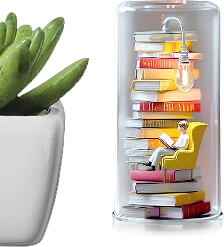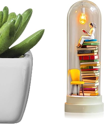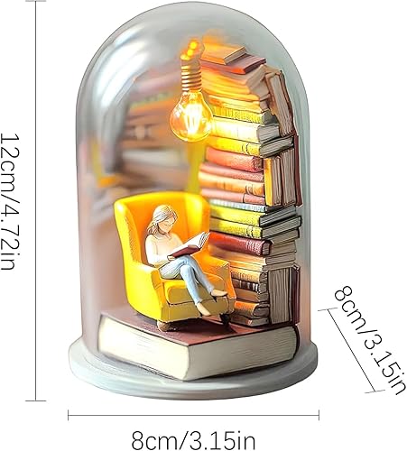 Générique Library Library Miniature Sculpture Reader Night Light Livre Miniature avec décor de décoration de Plate