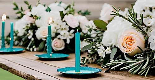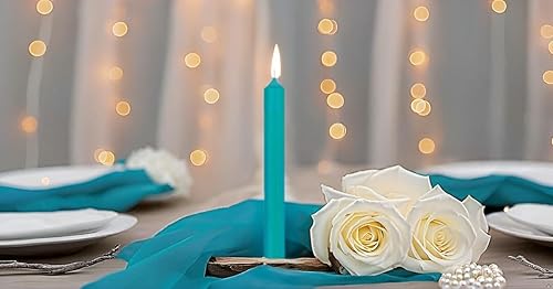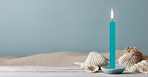 Lot de 10 bougies de table colorées en continu pour la décoration de table pour mariage, Noël et fête - Couleur : bleu turquoise/bleu - Hauteur : 18 cm