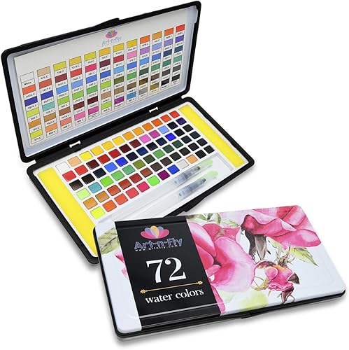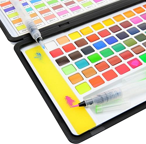 Palette de Peinture Aquarelle de 72 Couleurs avec 2 Pinceaux à Réservoir d'Eau - Inclus Peinture de Couleur Or Argent Pastel et Couleurs de peau