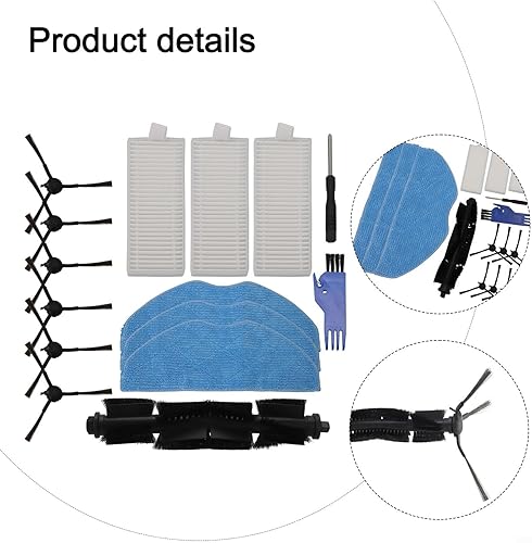 Lot d'accessoires de rechange pour aspirateur robot EZVIZ RE4 RE5 Plus, 1 brosse principale, 3 filtres, 3 lingettes serpillères, 1 tournevis, 6 brosses latérales, 1 brosse de nettoyage