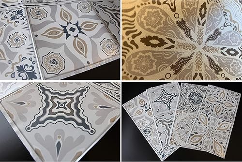 Lot de 24 autocollants de sol en mosaïque pour carrelage mural de 15 x 15 cm - Pour salle de bain et cuisine - Gris et blanc - 15 x 15 cm