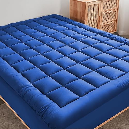 Protège-matelas doux et respirant – Surmatelas avec poche extensible jusqu'à 45,7 cm de profondeur pour surmatelas rafraîchissant jusqu'à 20,3 à 53,3 cm (bleu, très grand lit)