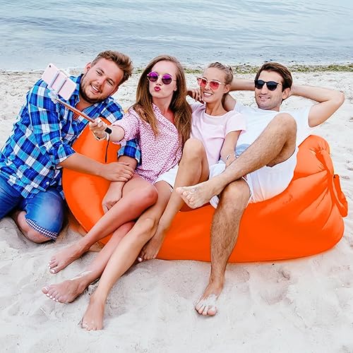 Sofa Gonflable Plage, FainFun 200*70cm Canapé Plage Gonflable, Transat Gonflable Vent, Hamac Gonflable Exterieur, pour Le Camping, la Mer, la Plage, Le Salon d'air, Bleu (Rose rouge, 180*70*45cm)
