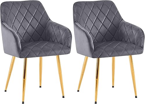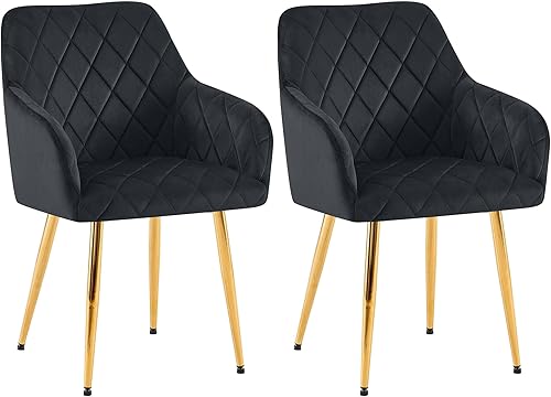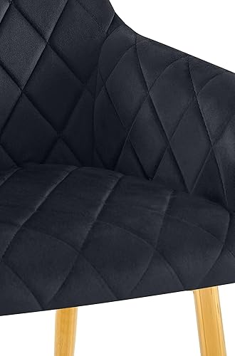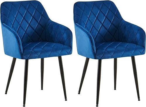 CLP Lot de 2 chaises de Salle à Manger Monett I Chaises rembourrées avec revêtement en Velours, Couleur:Bleu foncé, Matériel du Cadre:métal Or