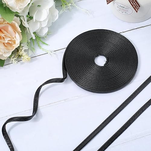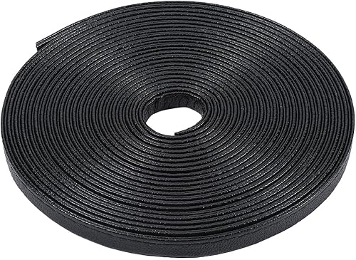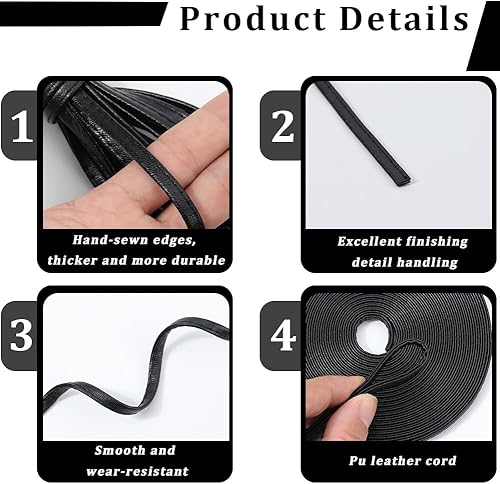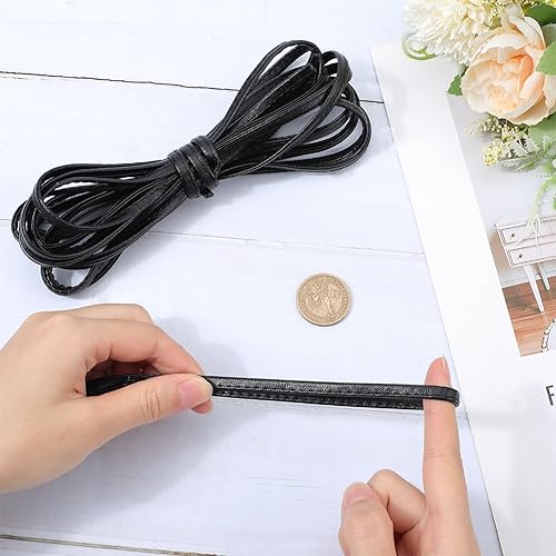 GORGECRAFT Bandes de Cuir Double Face 5mX8mmX2.1mm Lanières en Cuir PU Noir Cordon Plat en Cuir Bords Cousus à la Main Fils en PU Cordes pour Bricolage Fabrication de Poignées Ceintures Gants