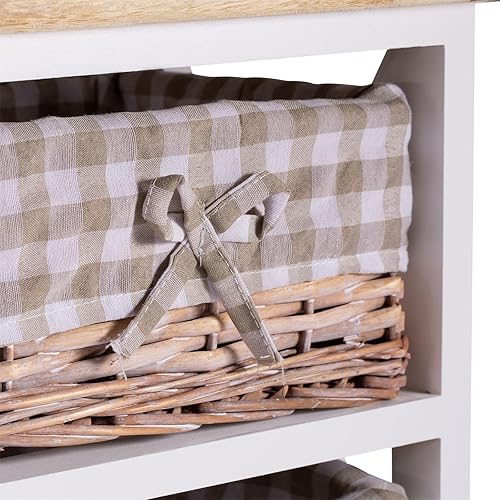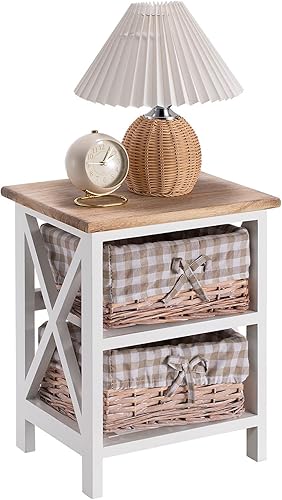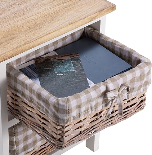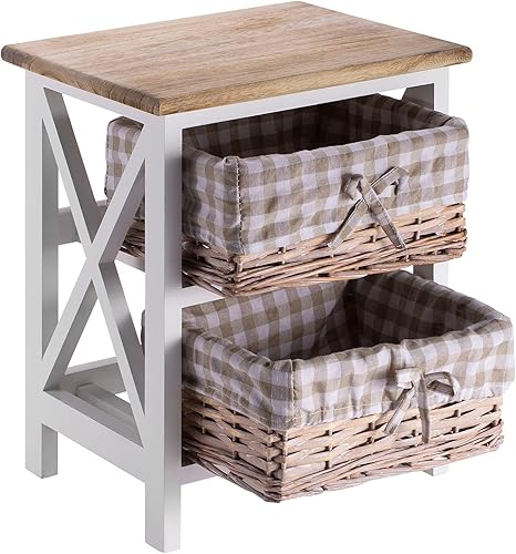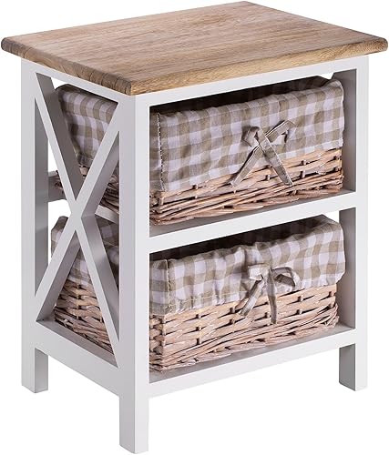 IDIMEX Table de Chevet Perugia Table de Nuit 2 paniers en Bois de Paulownia Style Shabby Chic Vintage Rustique campagnard Blanc et Brun