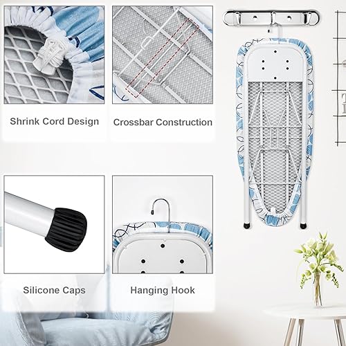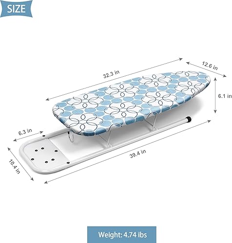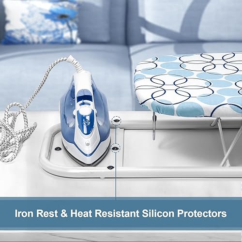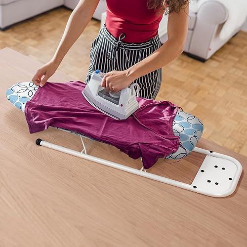 Duwee 32x82cm Table à Repasser de Table avec Repose-Fer, Housse Résistante à la Chaleur avec Coussin en Feutre épais, Design Compact et léger,Le Cercle