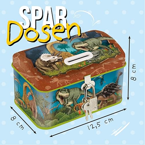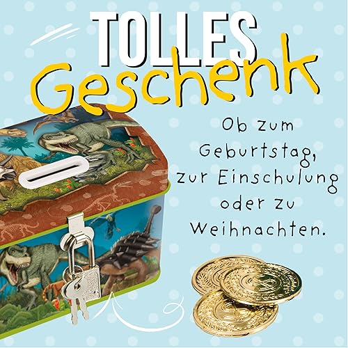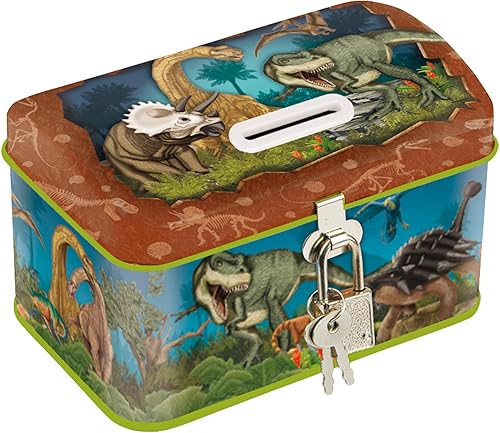 TapirElla Lutz Mauder Tirelire en métal pour enfant avec serrure, dinosaure, T-Rex, préhistoire, dinosaure, idée cadeau pour filles et garçons