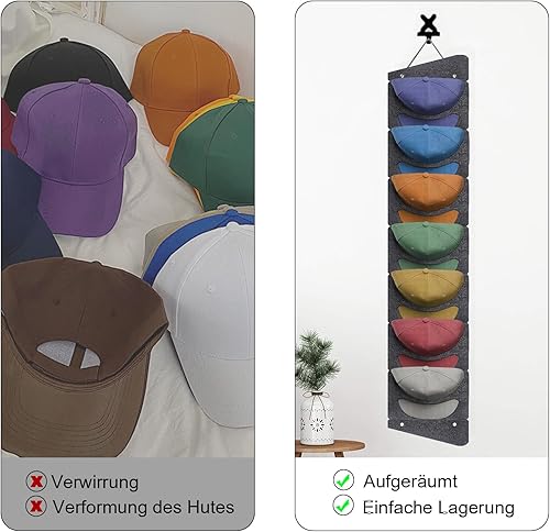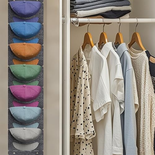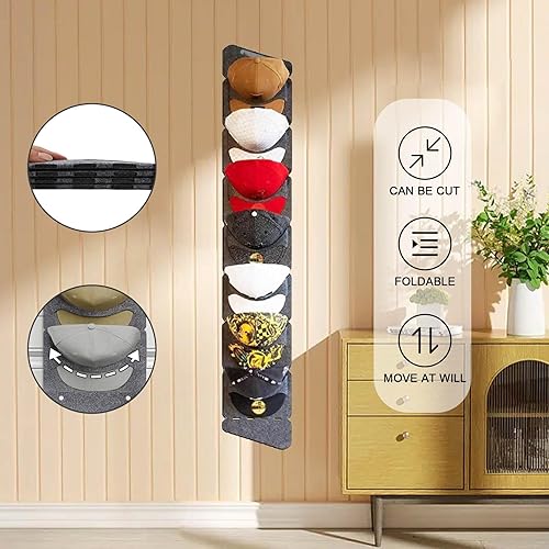 CANCYCC Support mural pour casquettes de baseball - Pliable - Avec 7 poches - Organiseur de rangement pour casquettes de baseball