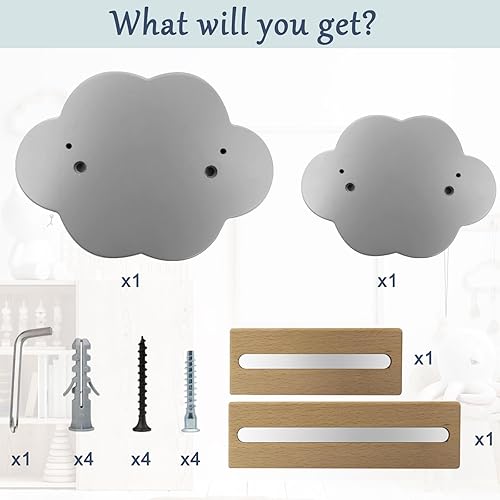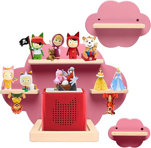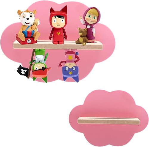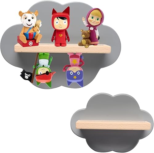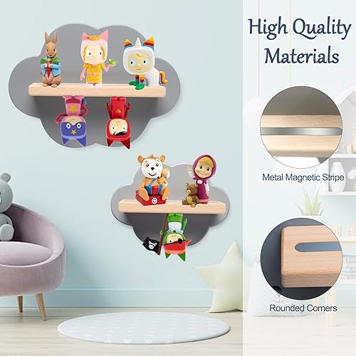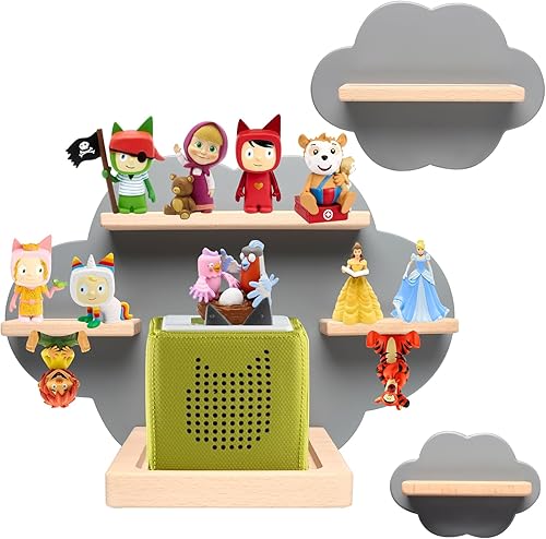 Tonies Lot de 2 étagères flottantes pour 16 figurines, étagère de rangement murale magnétique Tonies en forme de nuage, étagère Tonie Box pour chambre d'enfant, étagère en bois gris