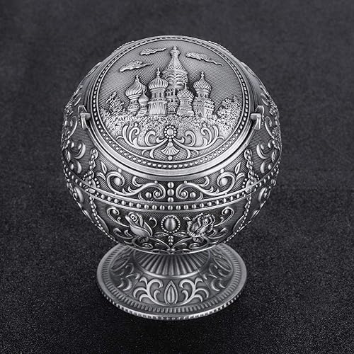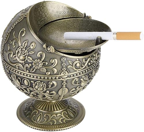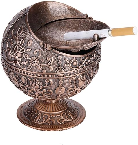 Boule en métal vintage d'artisanat de cendrier impression motif décoration(Laiton Aspect Ancien)