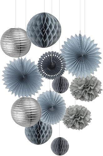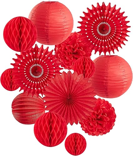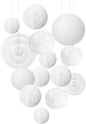 EASY JOY White Party Decoration Mariage Blanc Pompon Papier de Soie Fleur Rosace Papier Lanterne Chinoise Wedding Chambre Mariage Deco - 12pcs