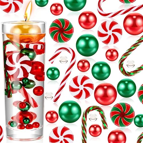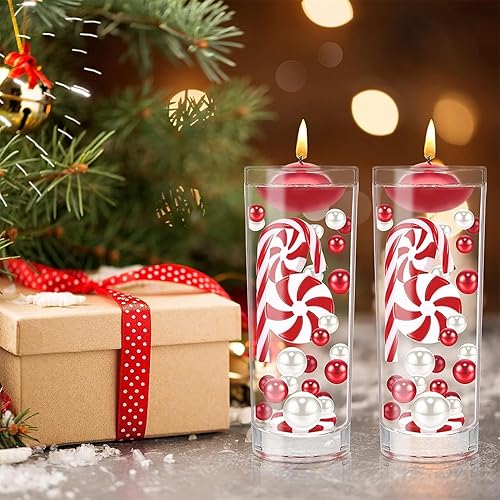 QYWT Décoration de Remplissage de Vase de Noël, Perles de Canne à Sucre, Ornement en Gel d'eau, Bougies flottantes de Noël, décoration de Vase pour la Maison, fête de Mariage,Ensemble 2