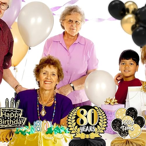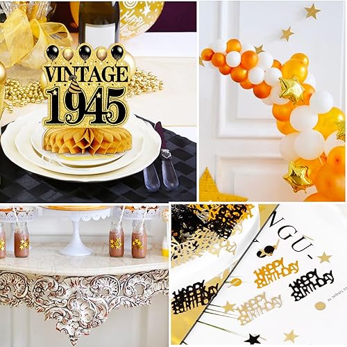 9 Ensembles Décorations Anniversaire 80 Ans Centres de Table Nid d'Abeille Confettis Happy Birthday Accessoires Décorations Cellulaire Hommes Femmes Fournitures de Fête Anniversaire