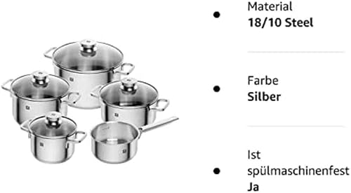 ZWILLING Set de 5 Casseroles, Argenté 18/10 de Haute Qualité, série Focus