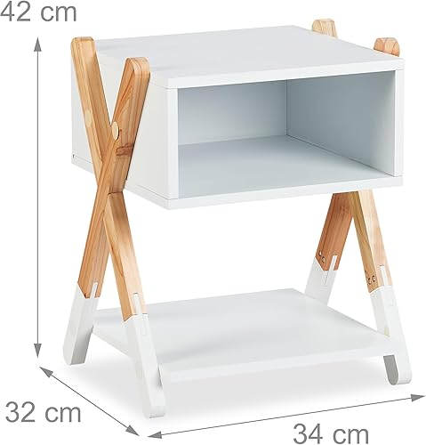 Relaxdays Table de Chevet, pour Votre Bout de Chou, Bois de pin et MDF, H x L x P : 42 x 34 x 30 cm, Blanc et Nature